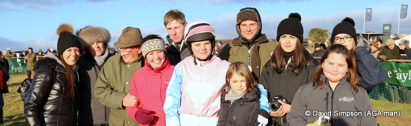 Will Biddick is in the pink silks, although as of this week he is now known as ‘Billy Widdick’ amongst some of his pointing friends (thanks to Mark Wall)A familiar and welcome sight on point-to-point courses across the UKPreparations are under way as Lilly walks the course with Helen HartRob HawkerHappy, happy, happy – Team BarberCharmix and Will Biddick – 1st in Div. 1 of the Open MaidenClaire Hart and Richard Bandey are reluctant to leave the lorry due to their choice of head gear!Pointing has a reputation for being a very social sport and there was plenty of evidence of that at Milborne, both in the lorry park and the car park